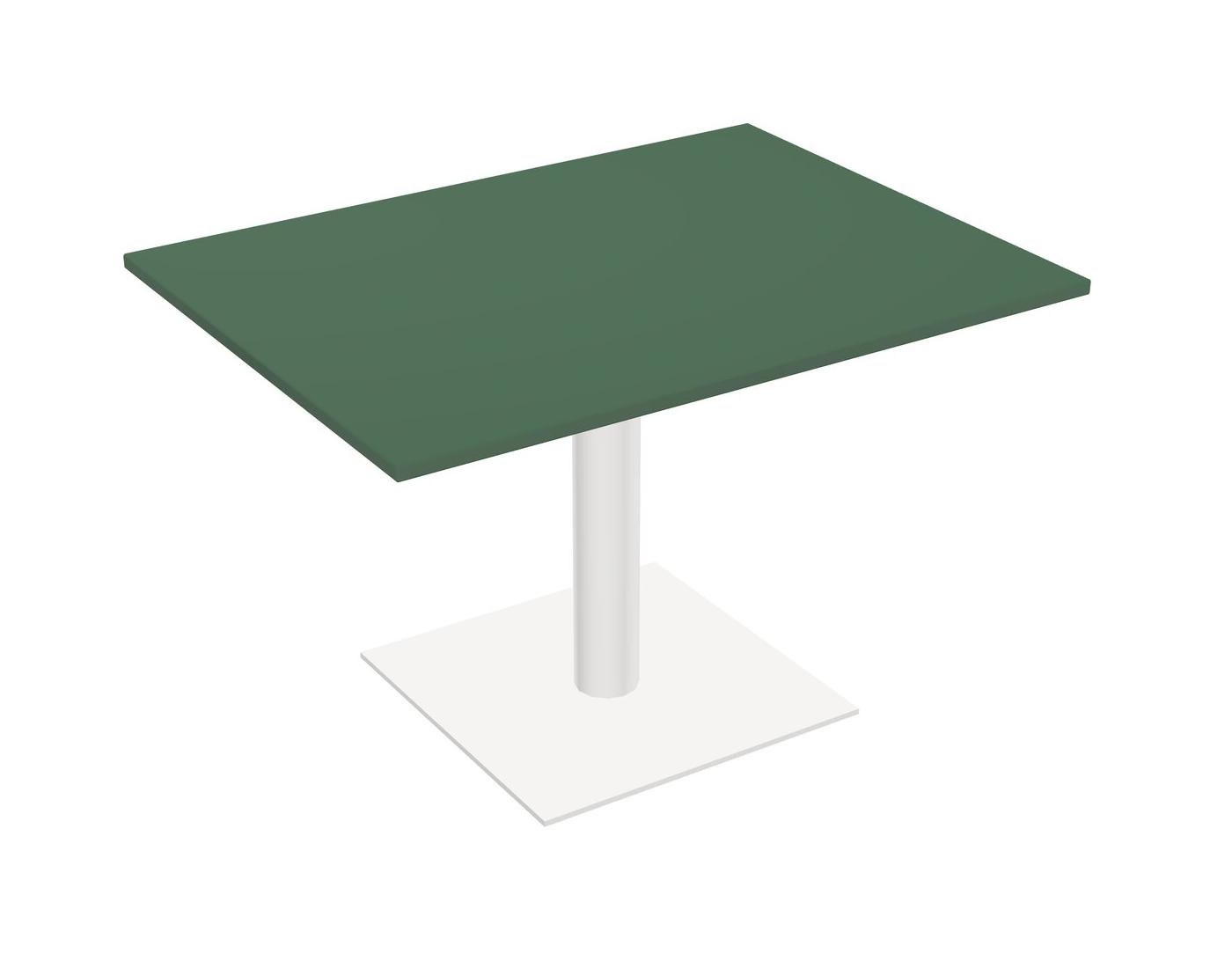 Table Modulaire Pour Bureau, Restaurant, Cafétéria, Salle De Pause Et Service De Restauration, Avec Plateau Vert, Pieds Ronds Blancs Et Base Carrée Blanche