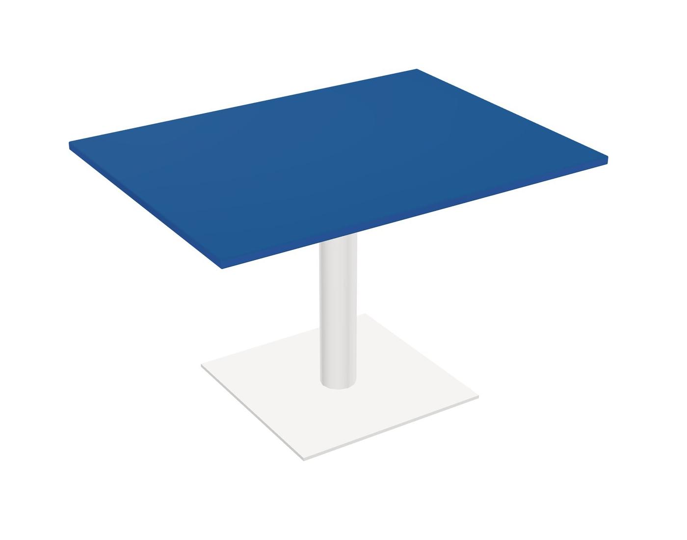 Table Modulaire Pour Bureau, Restaurant, Cafétéria, Salle De Pause Et Service De Restauration, Avec Plateau Bleu Prismatique, Pieds Ronds Blancs Et Base Carrée Blanche