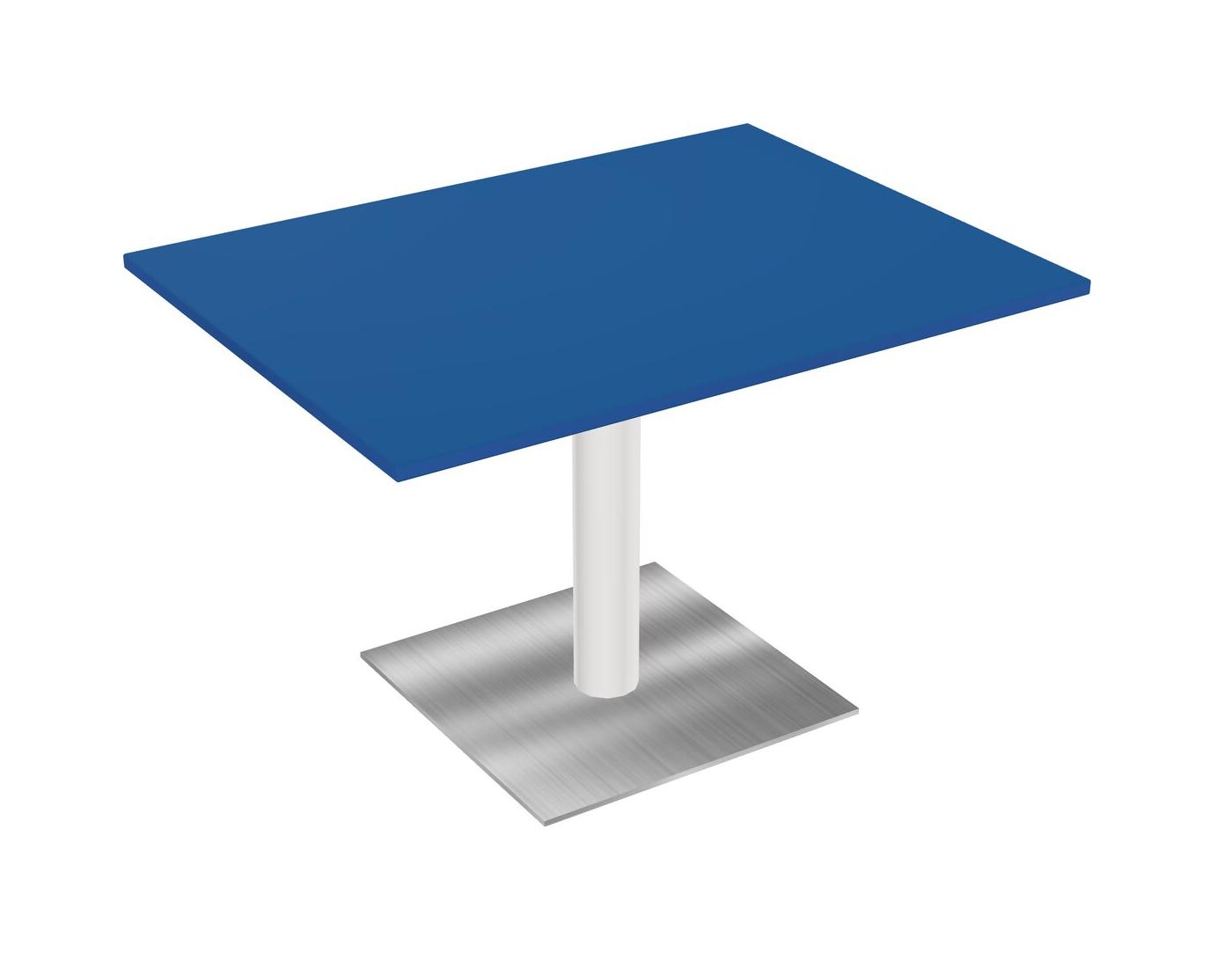 Table Modulaire Pour Bureau, Restaurant, Cafétéria, Salle De Pause Et Service De Restauration, Avec Plateau Bleu Prismatique, Pieds Ronds Blancs Et Base Carrée Chromée