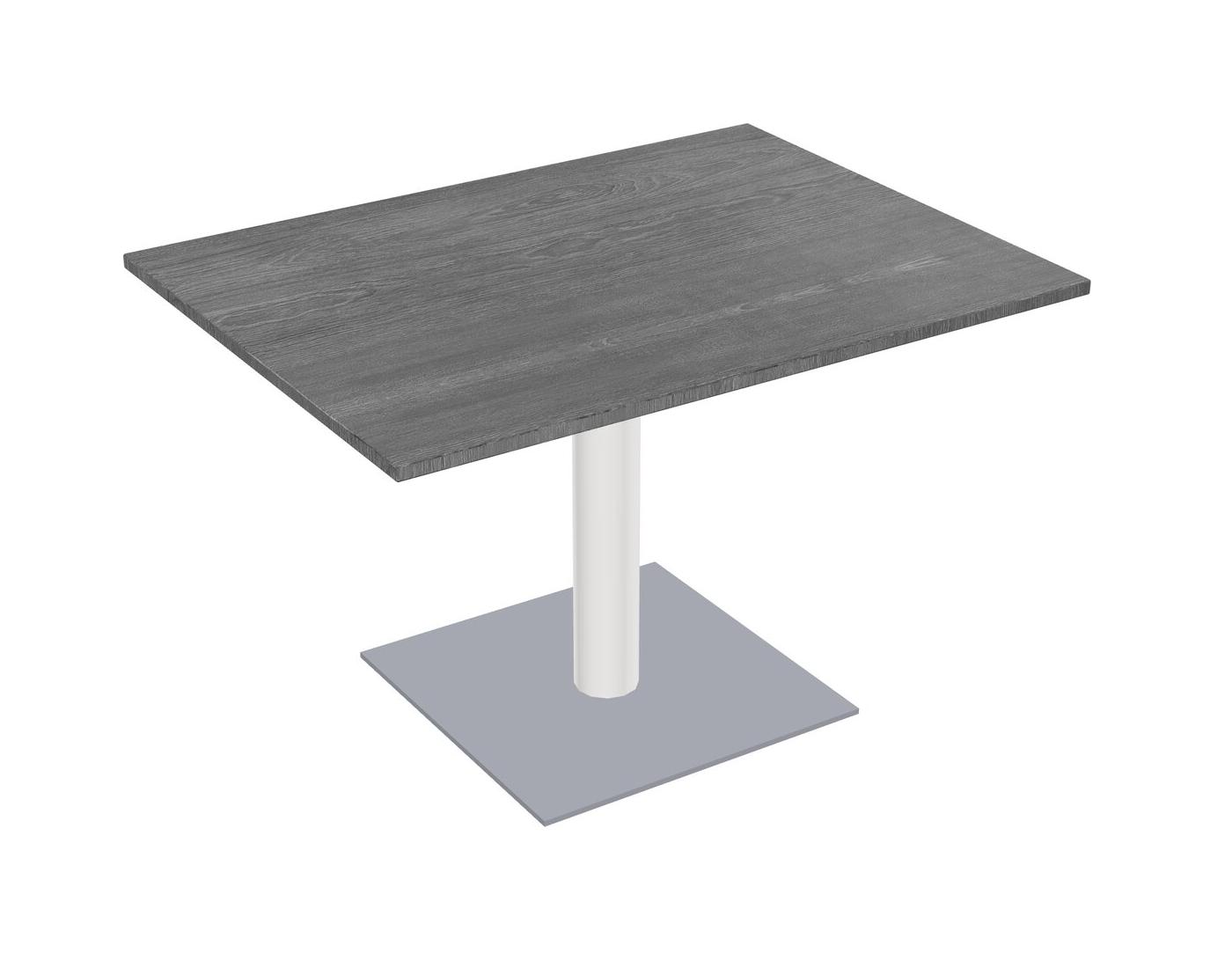 Table Modulaire Pour Bureau, Restaurant, Cafétéria, Salle De Pause Et Service De Restauration, Avec Plateau Gris, Pieds Ronds Blancs Et Base Carrée Grise