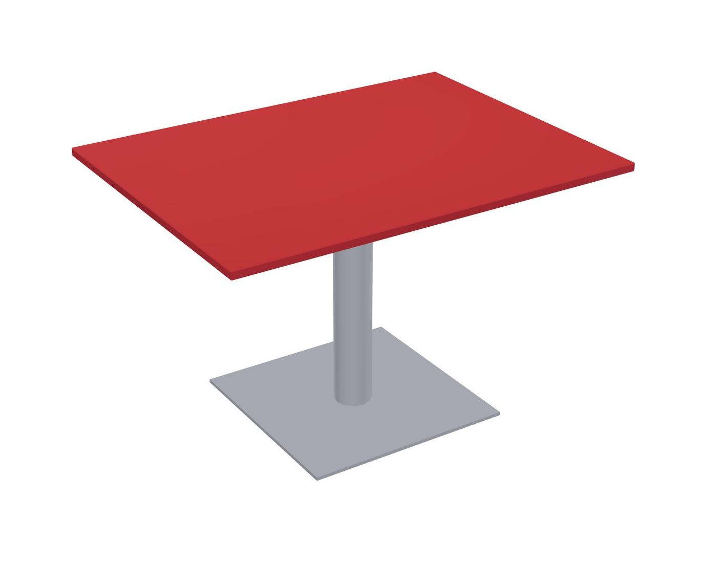 Table Modulaire Pour Bureau, Restaurant, Cafétéria, Salle De Pause Et Service De Restauration, Avec Plateau Rouge Prismatique, Pieds Ronds Gris Et Base Carrée Grise
