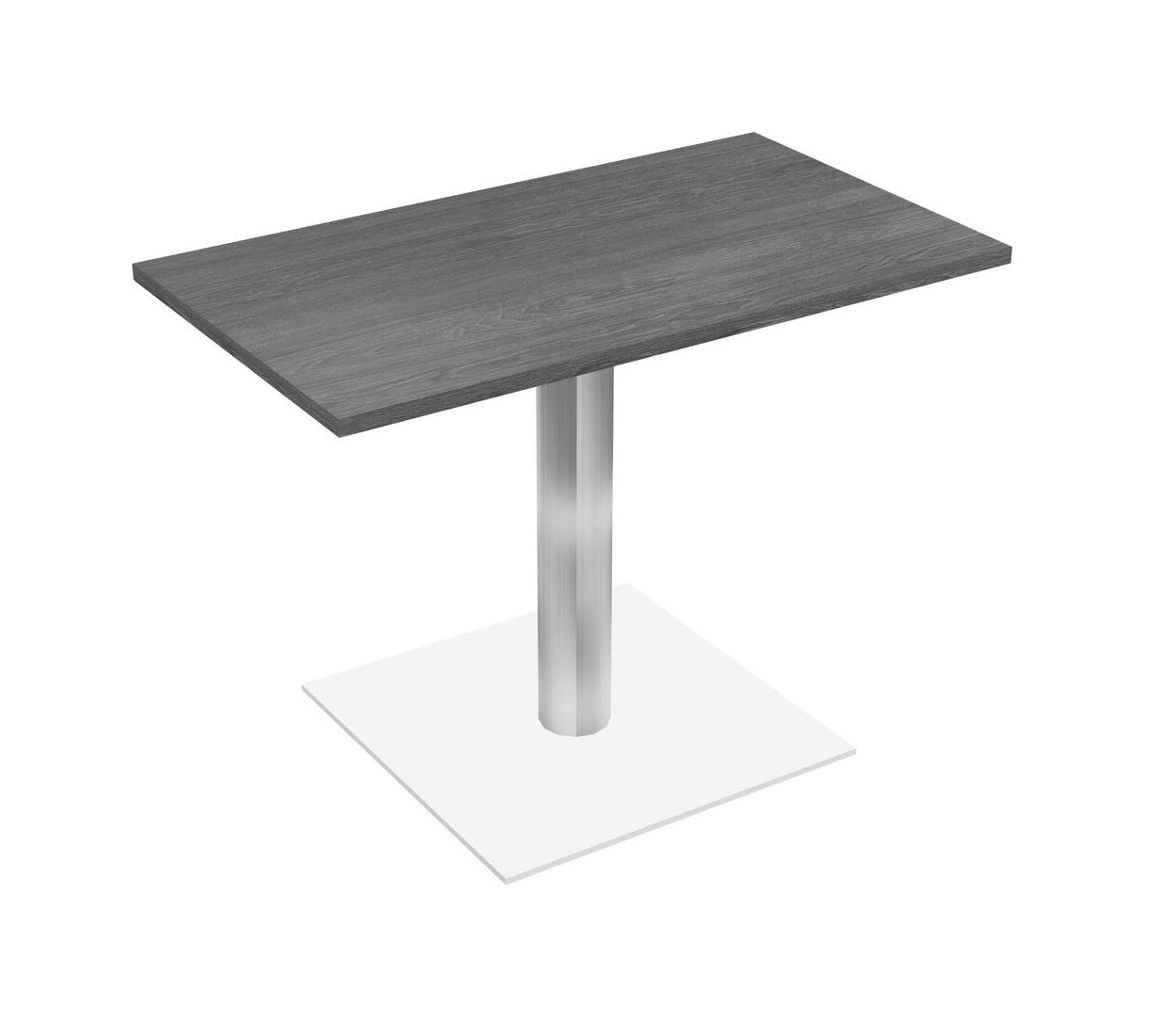 Table Modulaire Pour Bureau, Restaurant, Cafétéria, Salle De Pause Et Service De Restauration, Avec Plateau Gris, Pieds Ronds Chromés Et Base Carrée Blanche