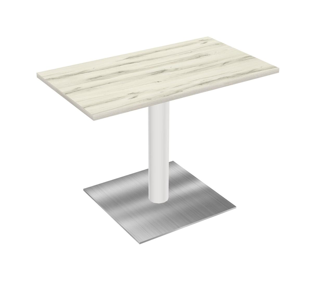 Table Modulaire Pour Bureau, Restaurant, Cafétéria, Salle De Pause Et Service De Restauration, Avec Plateau En Bois Heinne Holz, Pieds Ronds Blancs Et Base Carrée Chromée