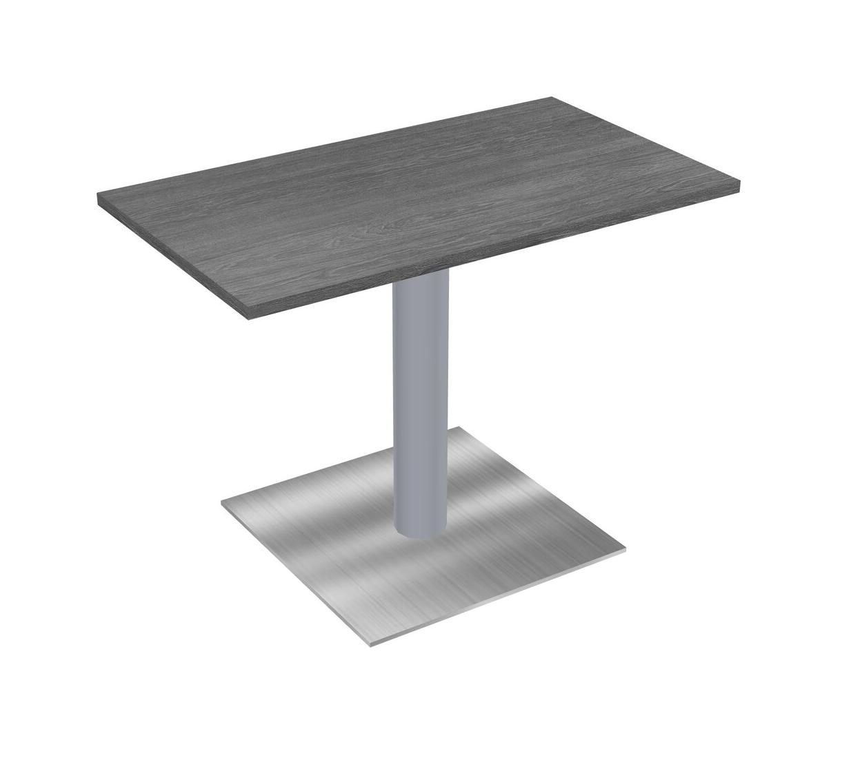 Table Modulaire Pour Bureau, Restaurant, Cafétéria, Salle De Pause Et Service De Restauration, Avec Plateau Gris, Pieds Ronds Gris Et Base Carrée Chromée