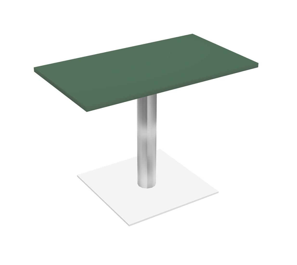 Table Modulaire Pour Bureau, Restaurant, Cafétéria, Salle De Pause Et Service De Restauration, Avec Plateau Vert, Pieds Ronds Chromés Et Base Carrée Blanche