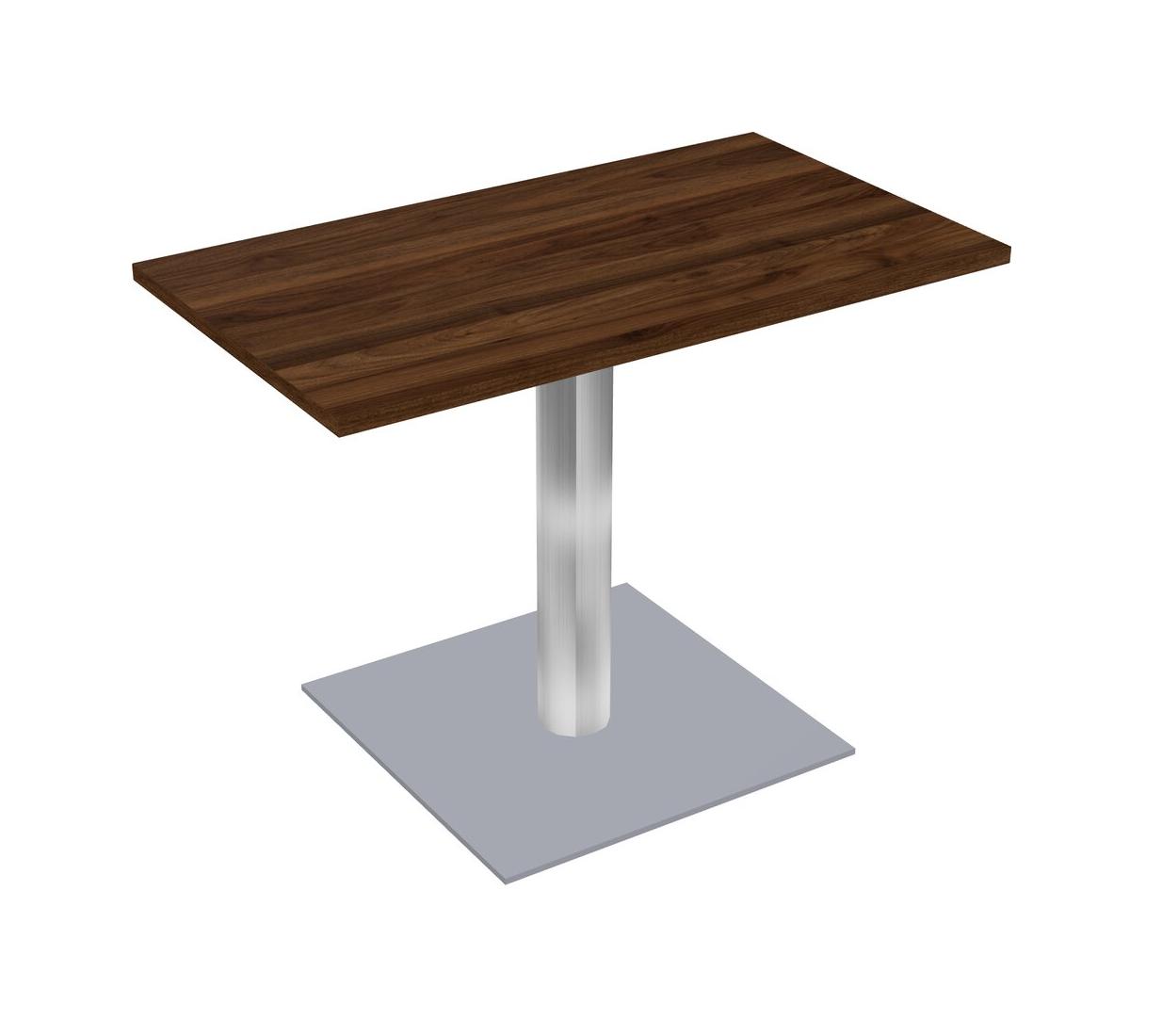 Table Modulaire Pour Bureau, Restaurant, Cafétéria, Salle De Pause Et Service De Restauration, Avec Plateau En Noyer De Colombie, Pieds Ronds Chromés Et Base Carrée Grise
