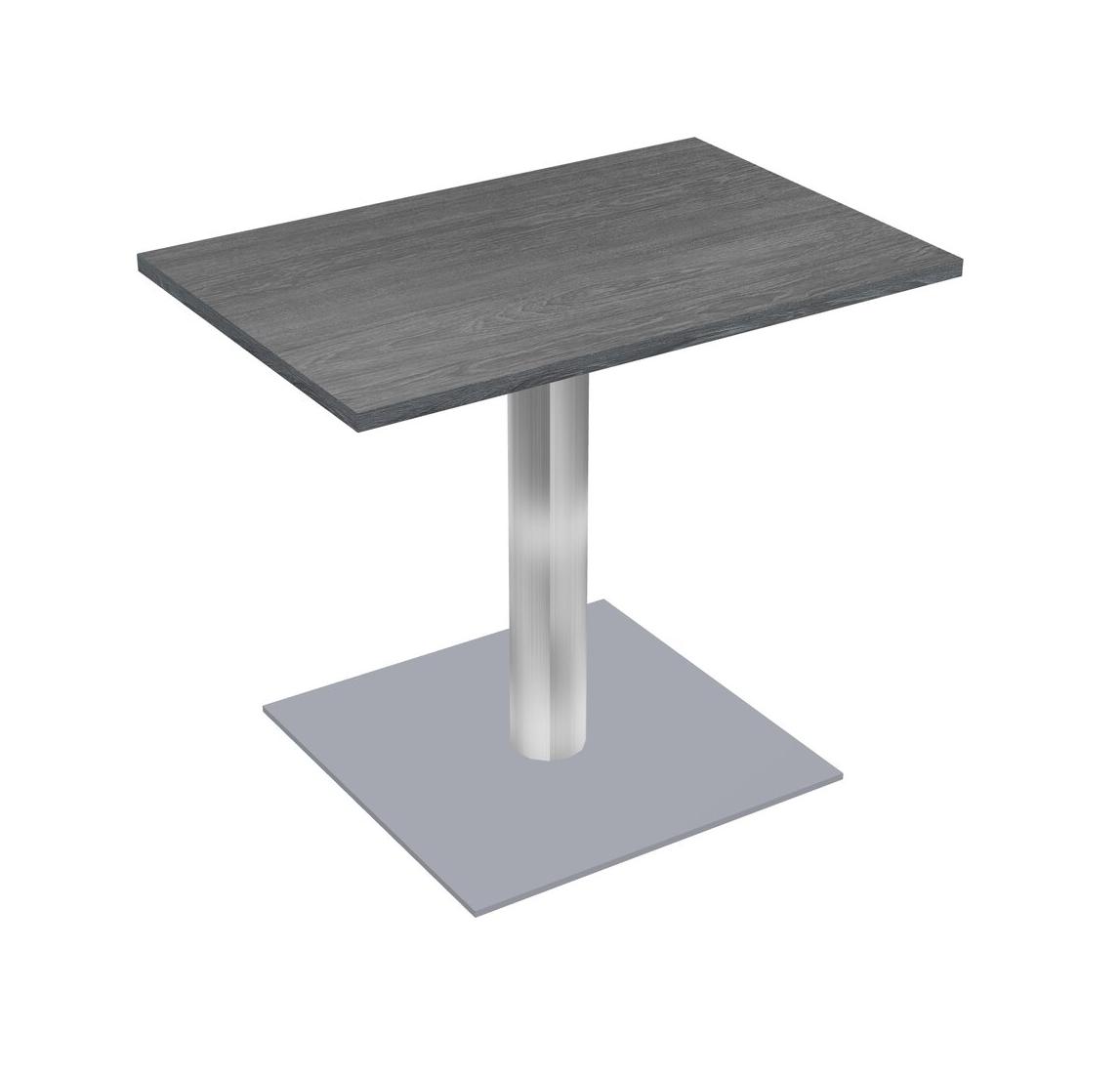 Table Modulaire Pour Bureau, Restaurant, Cafétéria, Salle De Pause Et Service De Restauration, Avec Plateau Gris, Pieds Ronds Chromés Et Base Carrée Grise