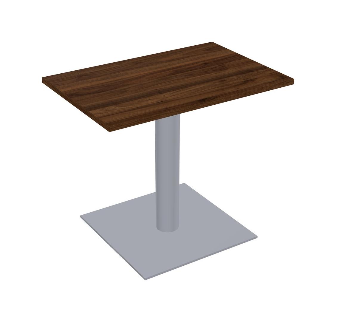 Table Modulaire Pour Bureau, Restaurant, Cafétéria, Salle De Pause Et Service De Restauration, Avec Plateau En Noyer De Colombie, Pieds Ronds Gris Et Base Carrée Grise