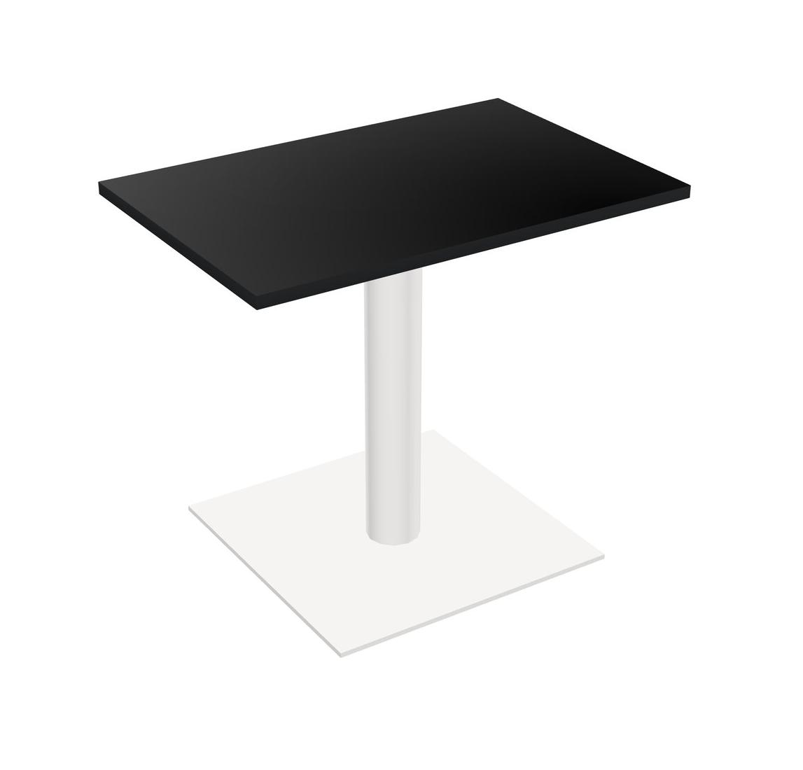 Table Modulaire Pour Bureau, Restaurant, Cafétéria, Salle De Pause Et Service De Restauration, Avec Plateau Noir, Pieds Ronds Blancs Et Base Carrée Blanche