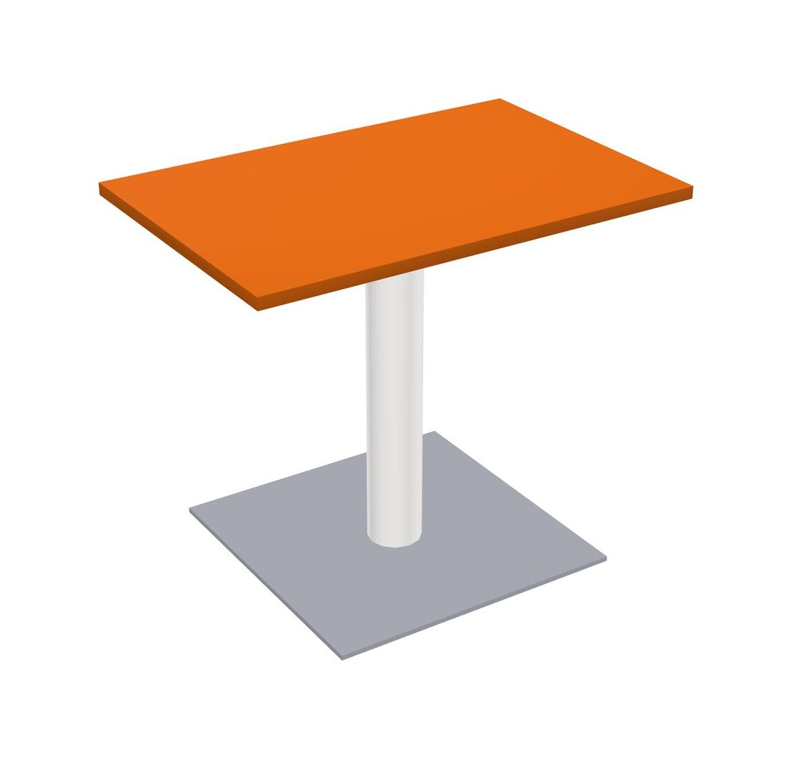 Table Modulaire Pour Bureau, Restaurant, Cafétéria, Salle De Pause Et Service De Restauration, Avec Plateau Orange, Pieds Ronds Blancs Et Base Carrée Grise