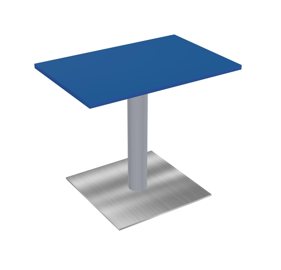 Table Modulaire Pour Bureau, Restaurant, Cafétéria, Salle De Pause Et Service De Restauration, Avec Plateau Bleu Prismatique, Pieds Ronds Gris Et Base Carrée Chromée