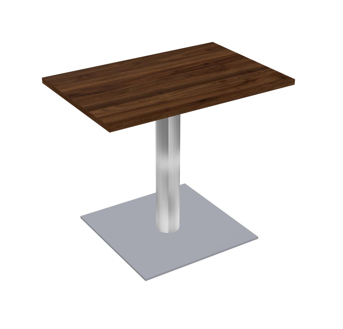 Table Modulaire Pour Bureau, Restaurant, Cafétéria, Salle De Pause Et Service De Restauration, Avec Plateau En Noyer De Colombie, Pieds Ronds Chromés Et Base Carrée Grise