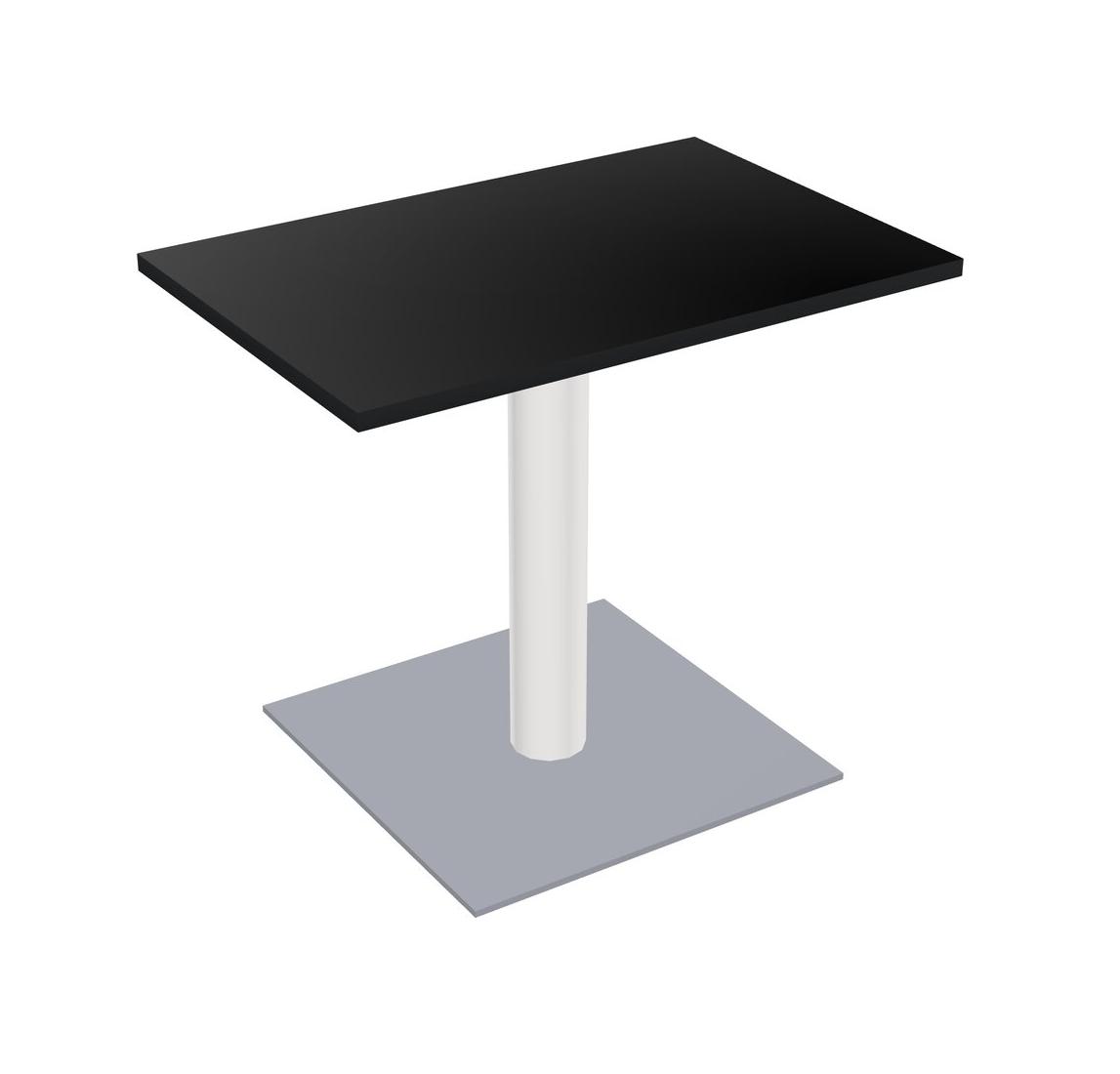 Table Modulaire Pour Bureau, Restaurant, Cafétéria, Salle De Pause Et Service De Restauration, Avec Plateau Noir, Pieds Ronds Blancs Et Base Carrée Grise