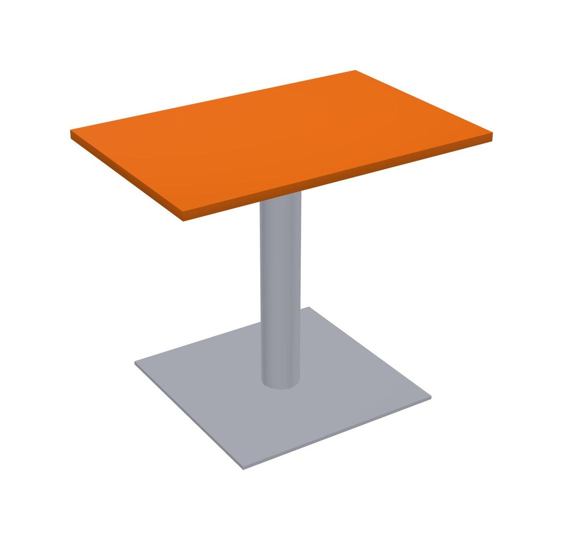 Table Modulaire Pour Bureau, Restaurant, Cafétéria, Salle De Pause Et Service De Restauration, Avec Plateau Orange, Pieds Ronds Gris Et Base Carrée Grise