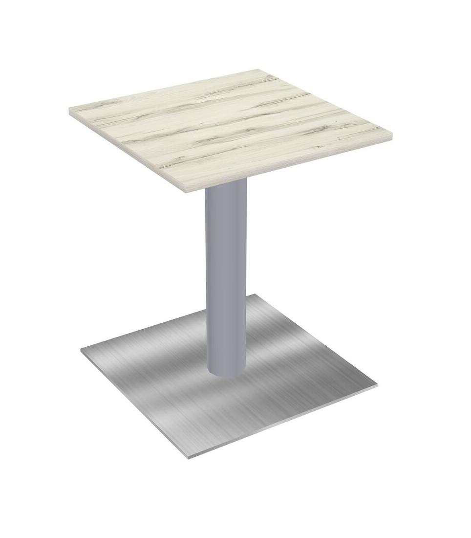 Table Modulaire Pour Bureau, Restaurant, Cafétéria, Salle De Pause Et Service De Restauration, Avec Plateau En Bois Heinne Holz, Pieds Ronds Gris Et Base Carrée Chromée
