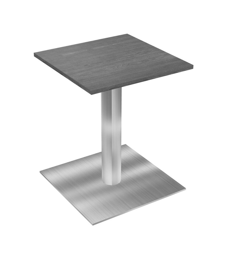 Table Modulaire Pour Bureau, Restaurant, Cafétéria, Salle De Pause Et Service De Restauration, Avec Plateau Gris, Pieds Ronds Chromés Et Base Carrée Chromée