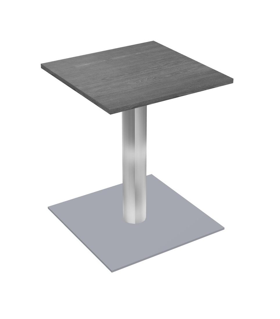 Table Modulaire Pour Bureau, Restaurant, Cafétéria, Salle De Pause Et Service De Restauration, Avec Plateau Gris, Pieds Ronds Chromés Et Base Carrée Grise