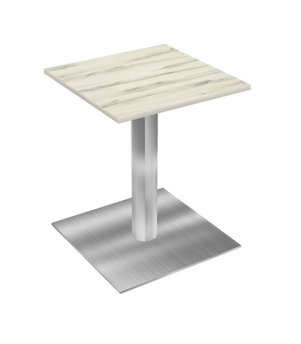 Table Modulaire Pour Bureau, Restaurant, Cafétéria, Salle De Pause Et Service De Restauration, Avec Plateau En Bois Heinne Holz, Pieds Ronds Chromés Et Base Carrée Chromée