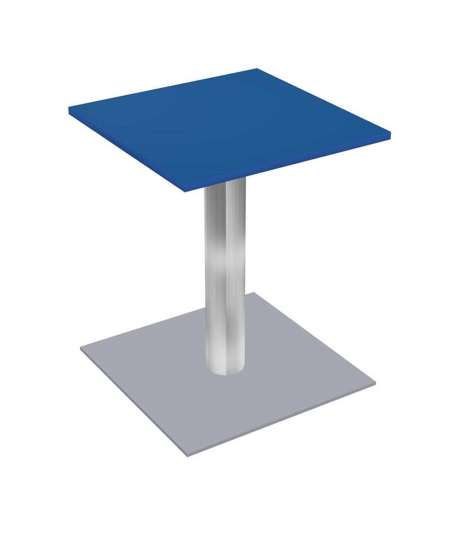 Table Modulaire Pour Bureau, Restaurant, Cafétéria, Salle De Pause Et Service De Restauration, Avec Plateau Bleu Prismatique, Pieds Ronds Chromés Et Base Carrée Grise