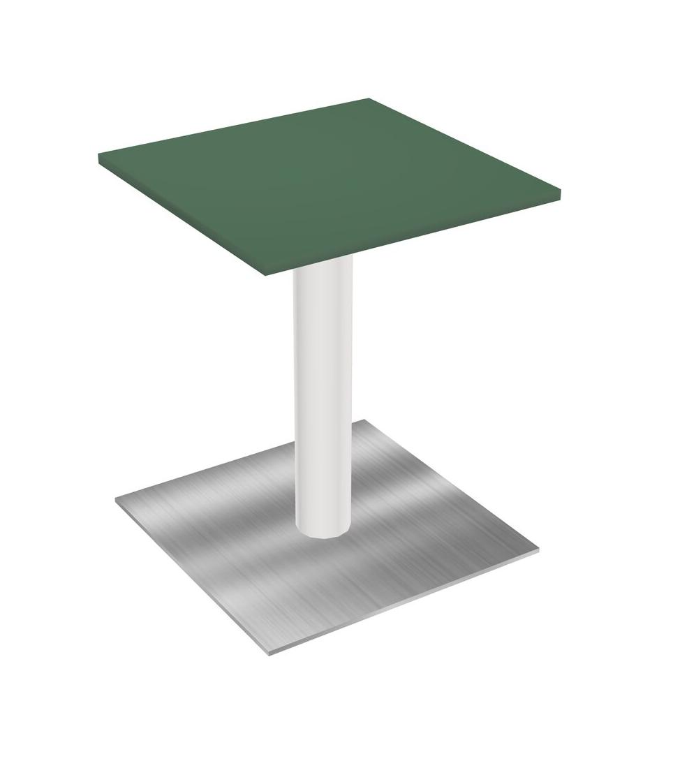 Table Modulaire Pour Bureau, Restaurant, Cafétéria, Salle De Pause Et Service De Restauration, Avec Plateau Vert, Pieds Ronds Blancs Et Base Carrée Chromée