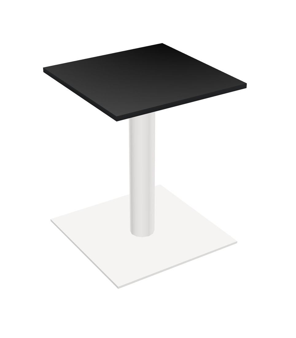 Table Modulaire Pour Bureau, Restaurant, Cafétéria, Salle De Pause Et Service De Restauration, Avec Plateau Noir, Pieds Ronds Blancs Et Base Carrée Blanche