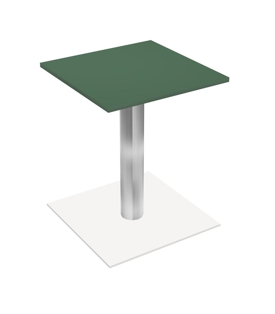 Table Modulaire Pour Bureau, Restaurant, Cafétéria, Salle De Pause Et Service De Restauration, Avec Plateau Vert, Pieds Ronds Chromés Et Base Carrée Blanche
