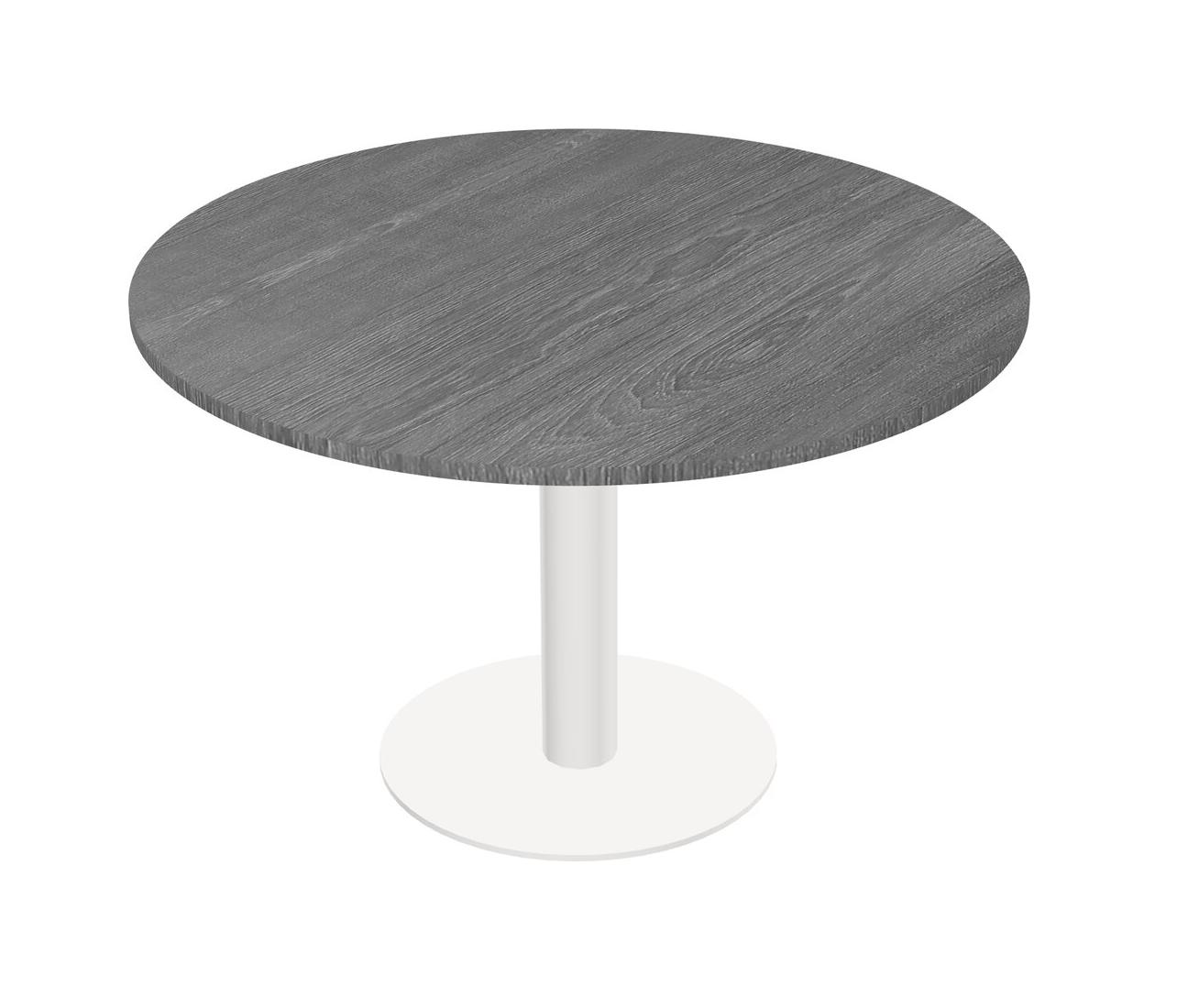 Table Modulaire Pour Bureau, Restaurant, Cafétéria, Salle De Pause Et Service De Restauration, Avec Plateau Gris, Pieds Ronds Blancs Et Base Ronde Blanche