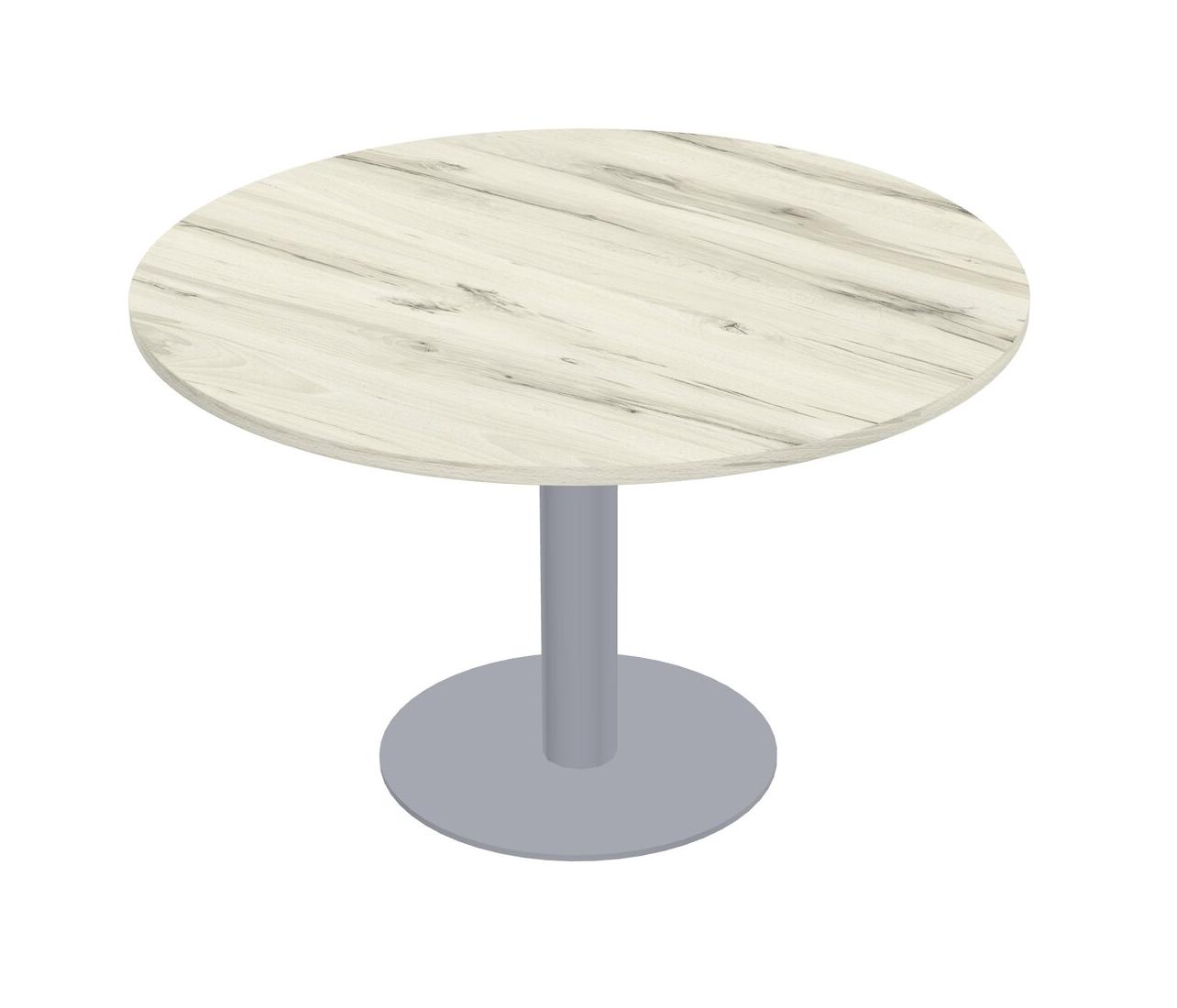 Table Modulaire Pour Bureau, Restaurant, Cafétéria, Salle De Pause Et Service De Restauration, Avec Plateau En Bois Heinne Holz, Pieds Ronds Gris Et Plaque De Base Ronde Grise