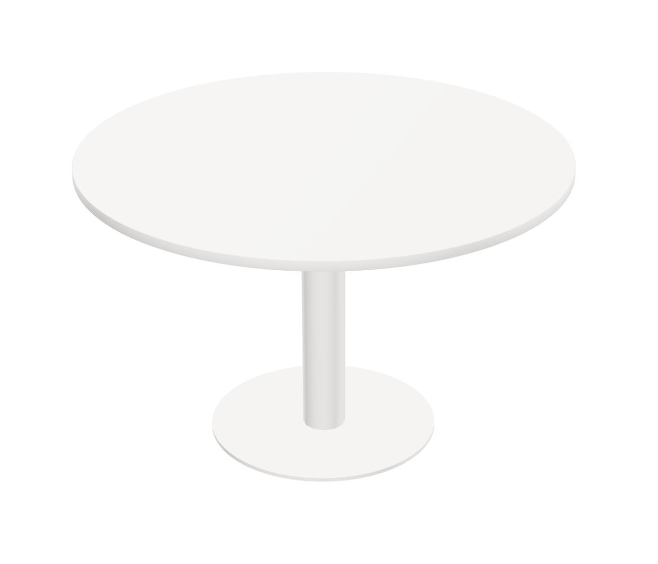 Table Modulaire Pour Bureau, Restaurant, Cafétéria, Salle De Pause Et Service De Restauration, Avec Plateau Blanc, Pieds Ronds Blancs Et Base Ronde Blanche