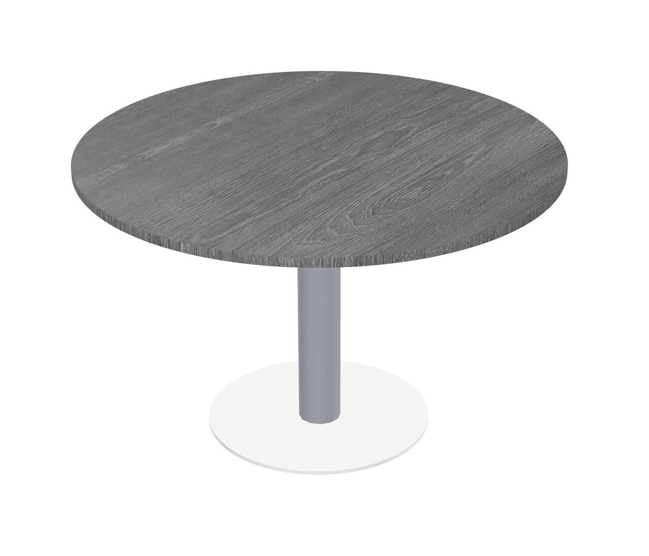 Table Modulaire Pour Bureau, Restaurant, Cafétéria, Salle De Pause Et Service De Restauration, Avec Plateau Gris, Pieds Ronds Gris Et Base Ronde Blanche
