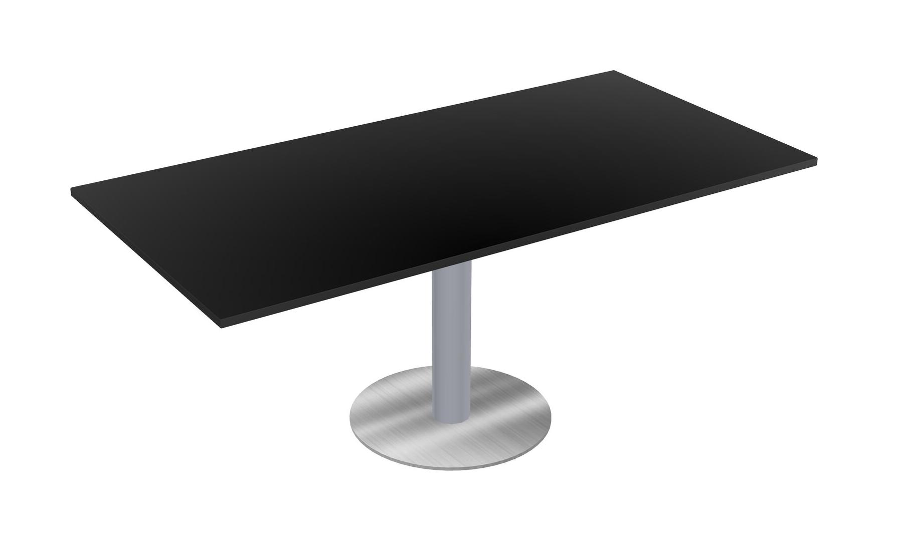 Table Modulaire Pour Bureau, Restaurant, Cafétéria, Salle De Pause Et Service De Restauration, Avec Plateau Noir, Pieds Ronds Gris Et Socle Rond Chromé