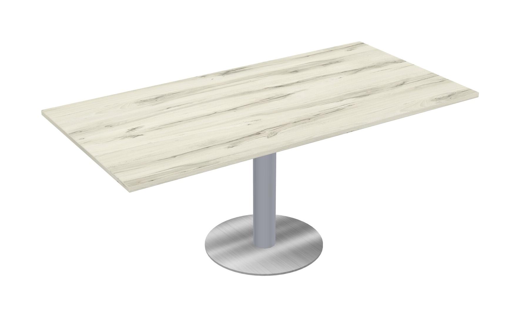 Table Modulaire Pour Bureau, Restaurant, Cafétéria, Salle De Pause Et Service De Restauration, Avec Plateau En Bois Heinne Holz, Pieds Ronds Gris Et Plaque De Base Ronde Chromée