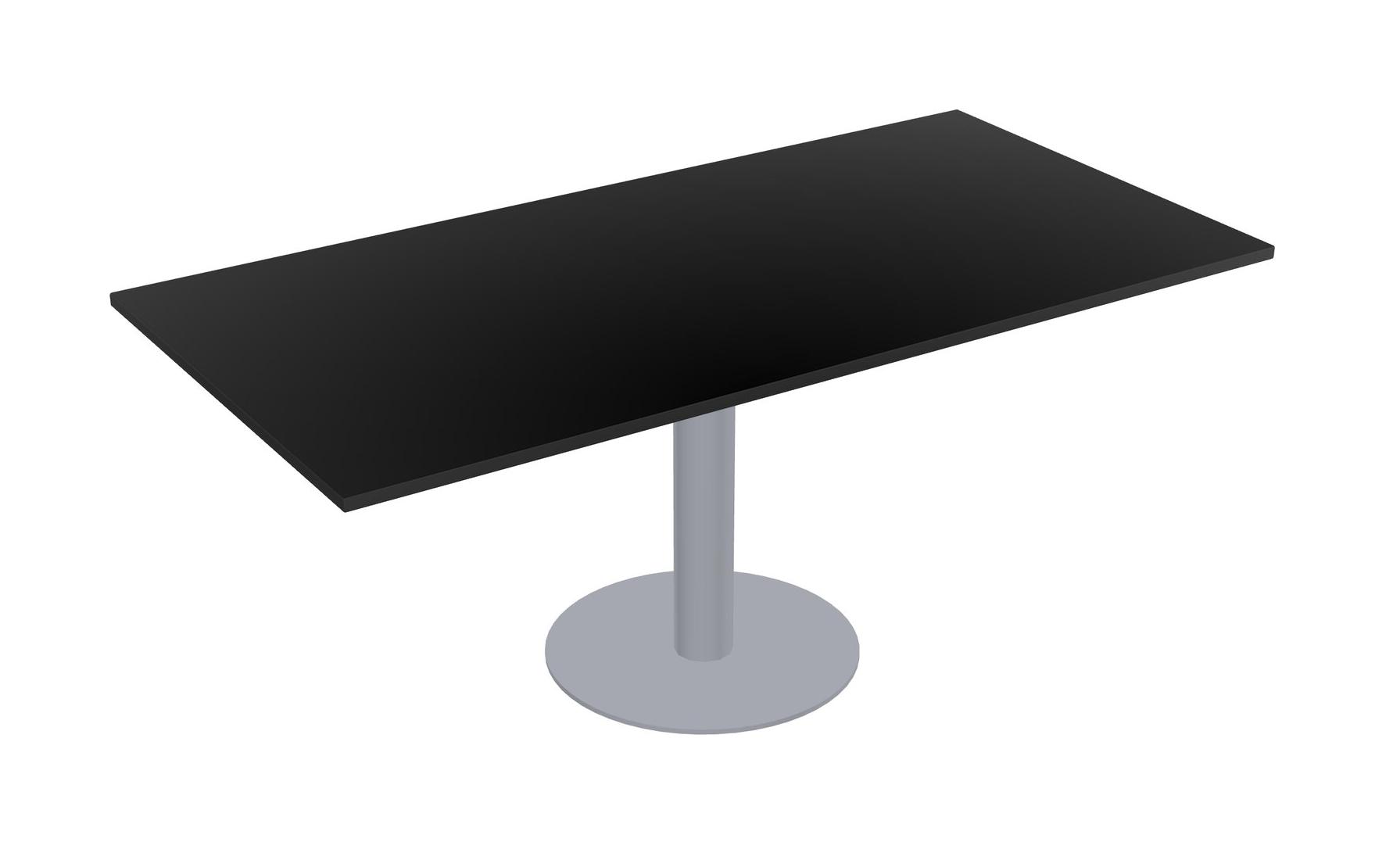 Table Modulaire Pour Bureau, Restaurant, Cafétéria, Salle De Pause Et Service De Restauration, Avec Plateau Noir, Pieds Ronds Gris Et Base Ronde Grise