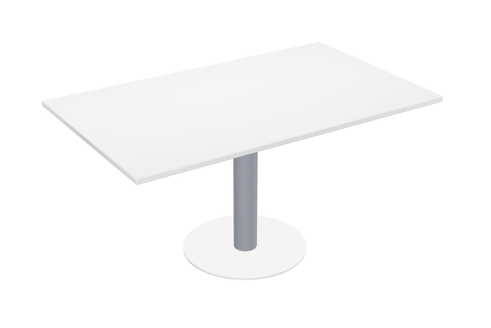 Table Modulaire Pour Bureau, Restaurant, Cafétéria, Salle De Pause Et Service De Restauration, Avec Plateau Blanc, Pieds Ronds Gris Et Base Ronde Blanche