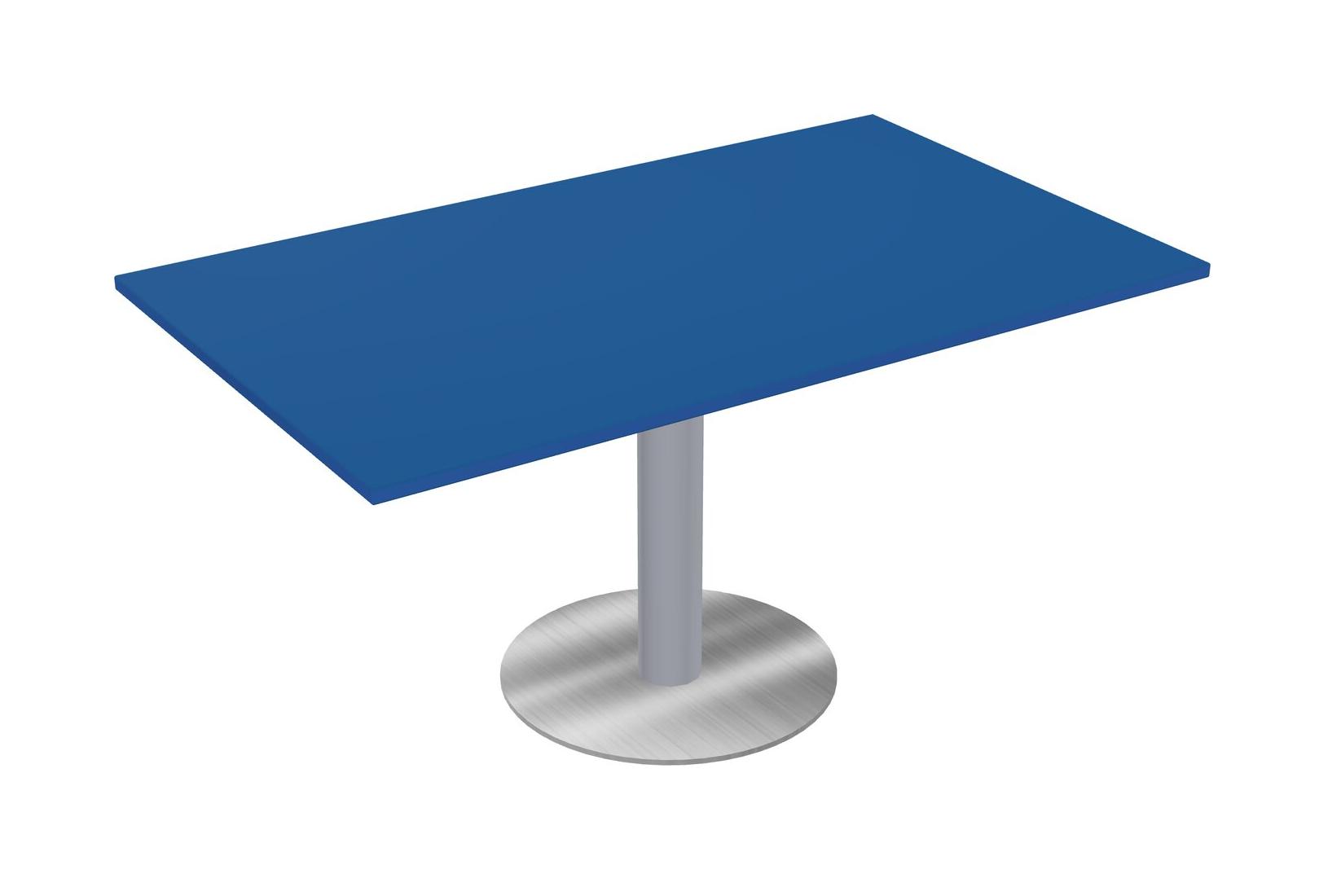 Table Modulaire Pour Bureau, Restaurant, Cafétéria, Salle De Pause Et Service De Restauration, Avec Plateau Bleu Prismatique, Pieds Ronds Gris Et Plaque De Base Ronde Chromée