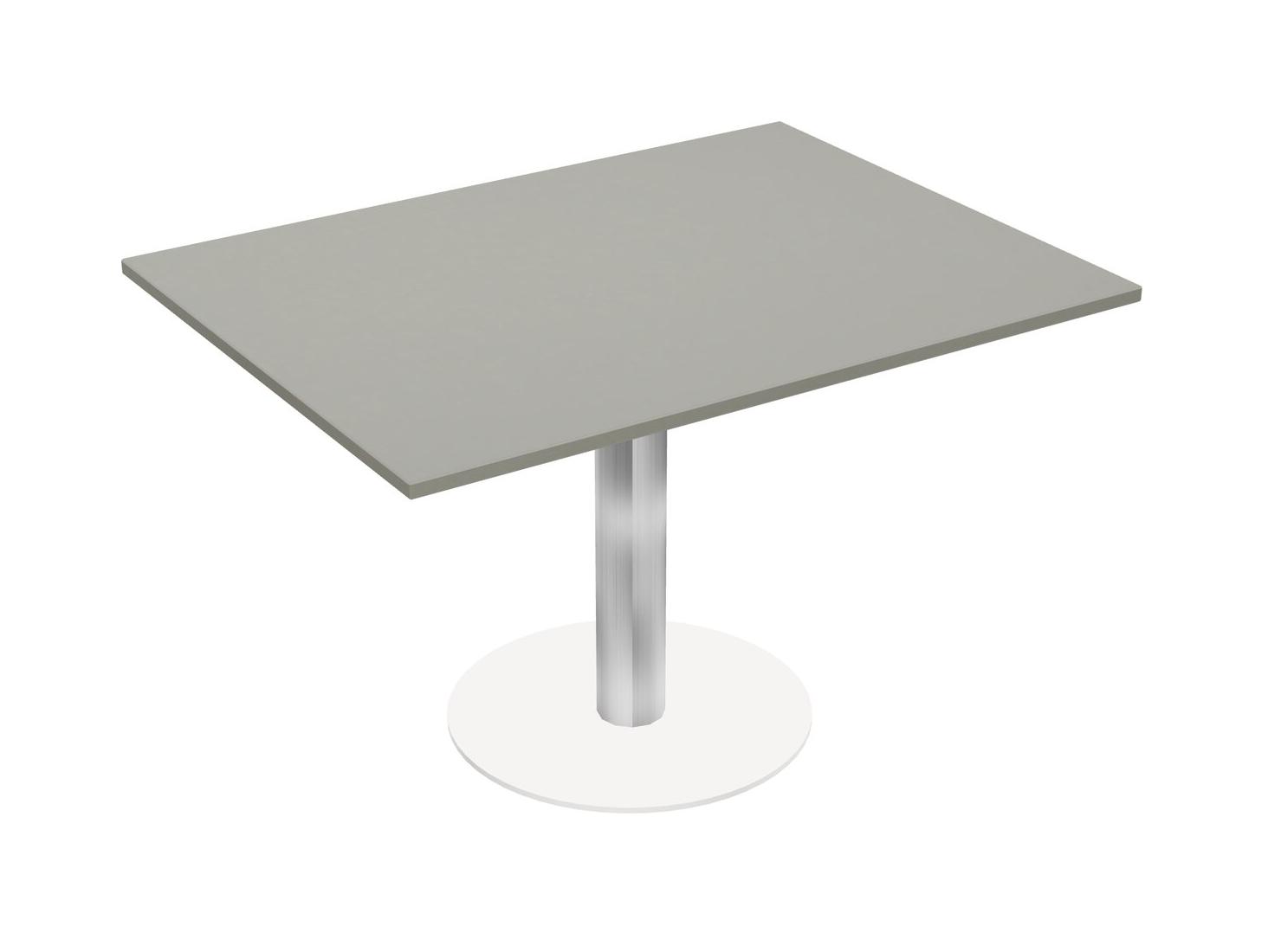 Table Modulaire Pour Bureau, Restaurant, Cafétéria, Salle De Pause Et Service De Restauration, Avec Plateau Gris Anthracite, Pieds Ronds Chromés Et Base Ronde Blanche