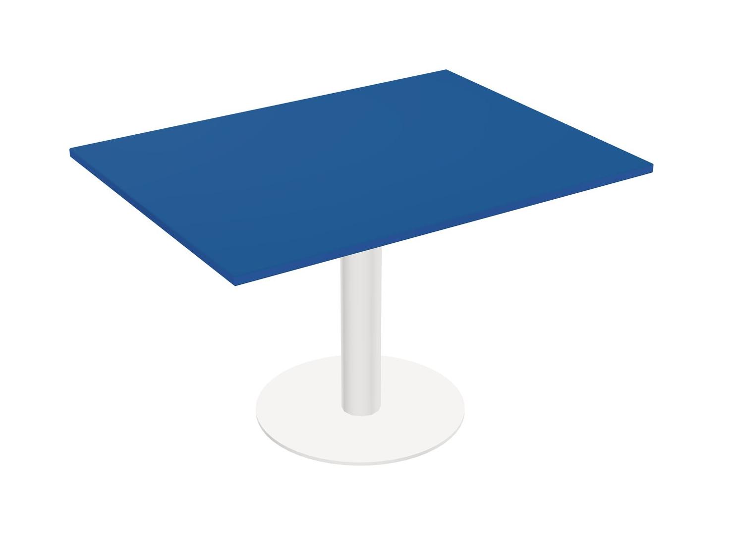 Table Modulaire Pour Bureau, Restaurant, Cafétéria, Salle De Pause Et Service De Restauration, Avec Plateau Bleu Prismatique, Pieds Ronds Blancs Et Base Ronde Blanche