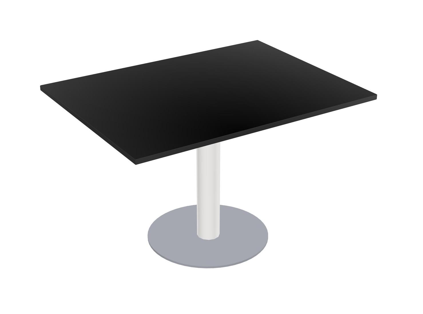 Table Modulaire Pour Bureau, Restaurant, Cafétéria, Salle De Pause Et Service De Restauration, Avec Plateau Noir, Pieds Ronds Blancs Et Base Ronde Grise