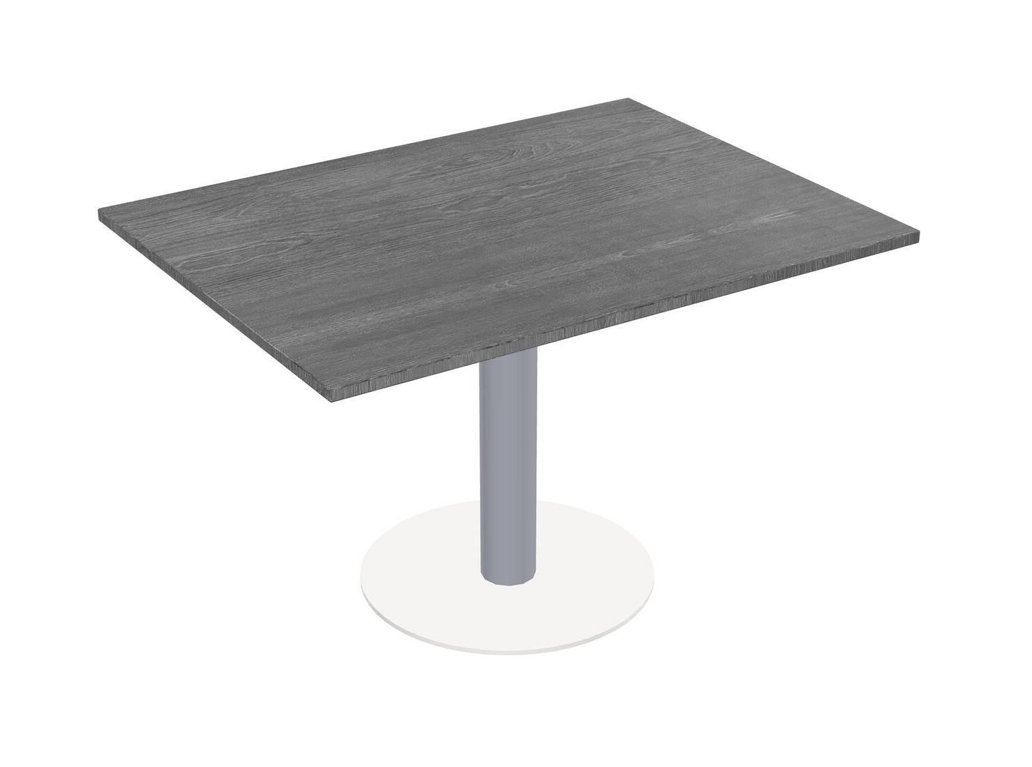 Table Modulaire Pour Bureau, Restaurant, Cafétéria, Salle De Pause Et Service De Restauration, Avec Plateau Gris, Pieds Ronds Gris Et Base Ronde Blanche