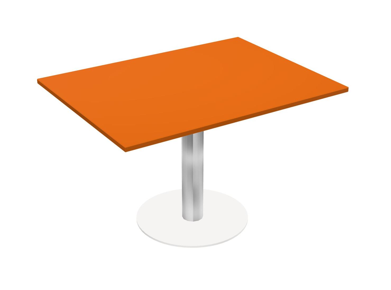 Table Modulaire Pour Bureau, Restaurant, Cafétéria, Salle De Pause Et Service De Restauration, Avec Plateau Orange, Pieds Ronds Chromés Et Base Ronde Blanche