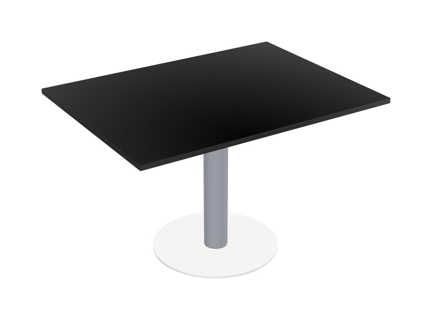 Table Modulaire Pour Bureau, Restaurant, Cafétéria, Salle De Pause Et Service De Restauration, Avec Plateau Noir, Pieds Ronds Gris Et Base Ronde Blanche