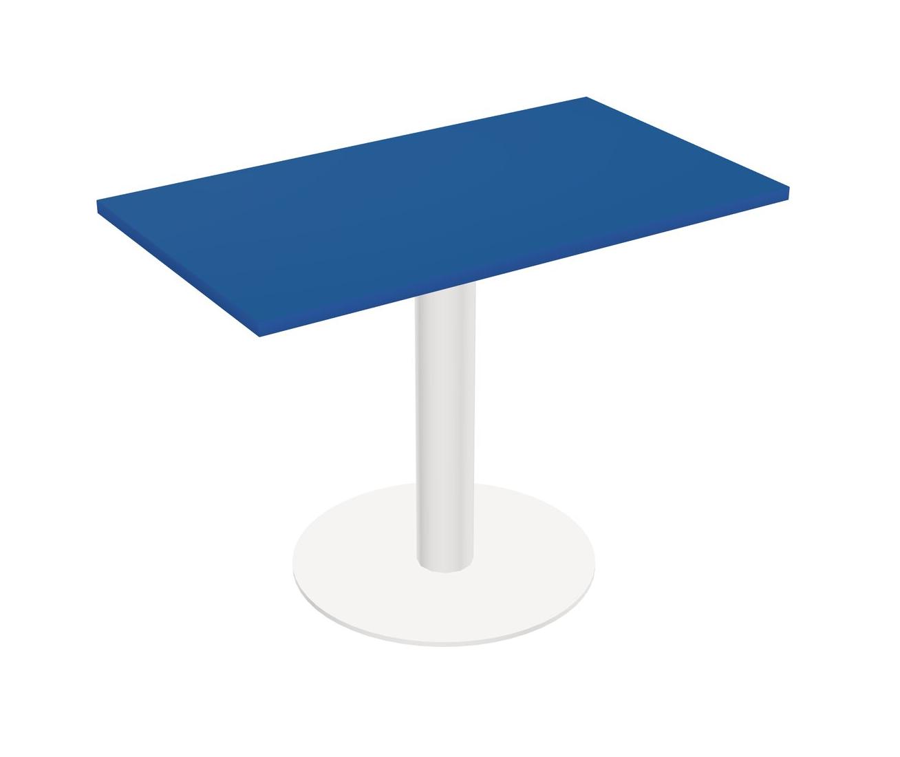 Table Modulaire Pour Bureau, Restaurant, Cafétéria, Salle De Pause Et Service De Restauration, Avec Plateau Bleu Prismatique, Pieds Ronds Blancs Et Base Ronde Blanche