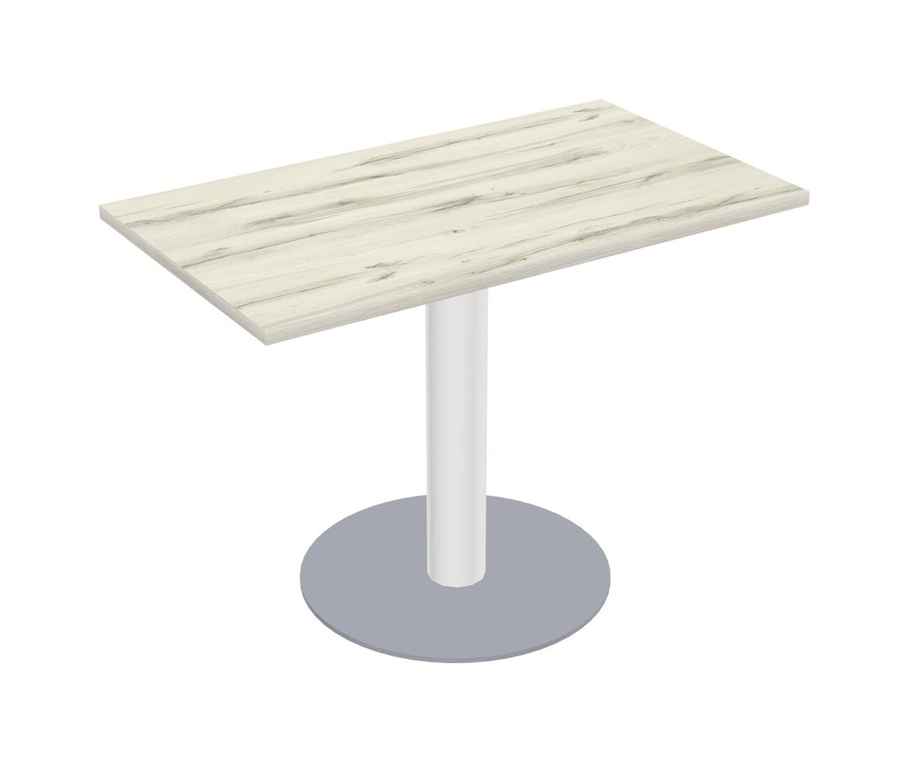 Table Modulaire Pour Bureau, Restaurant, Cafétéria, Salle De Pause Et Service De Restauration, Avec Plateau En Bois Heinne Holz, Pieds Ronds Blancs Et Base Ronde Grise