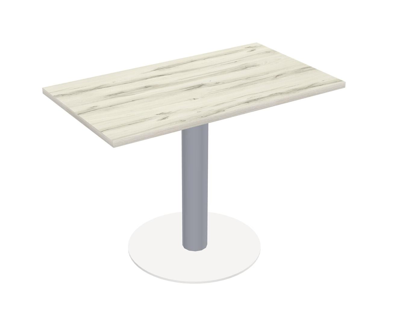 Table Modulaire Pour Bureau, Restaurant, Cafétéria, Salle De Pause Et Service De Restauration, Avec Plateau En Bois Heinne Holz, Pieds Ronds Gris Et Base Ronde Blanche