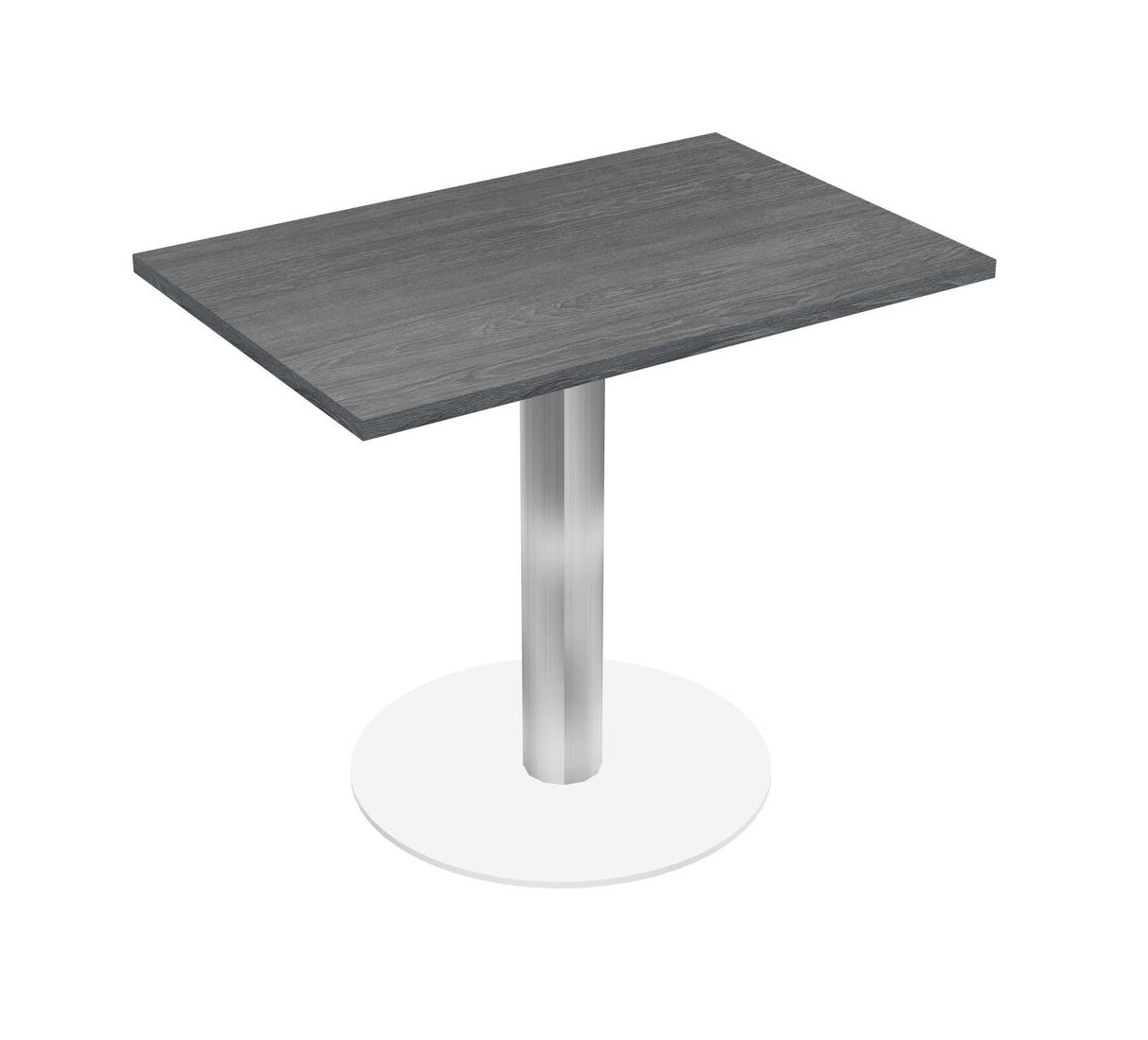 Table Modulaire Pour Bureau, Restaurant, Cafétéria, Salle De Pause Et Service De Restauration, Avec Plateau Gris, Pieds Ronds Chromés Et Base Ronde Blanche