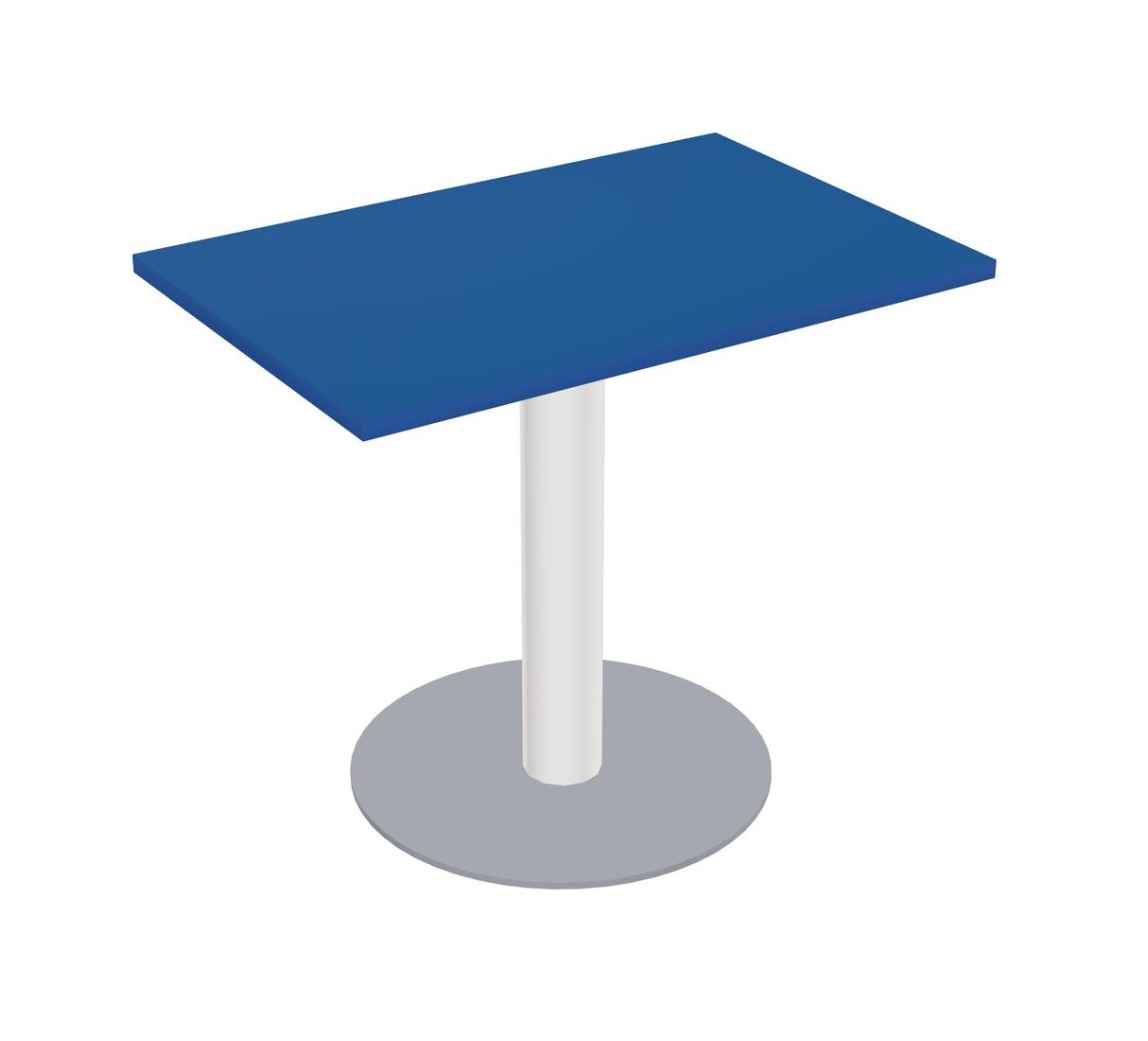 Table Modulaire Pour Bureau, Restaurant, Cafétéria, Salle De Pause Et Service De Restauration, Avec Plateau Bleu Prismatique, Pieds Ronds Blancs Et Base Ronde Grise