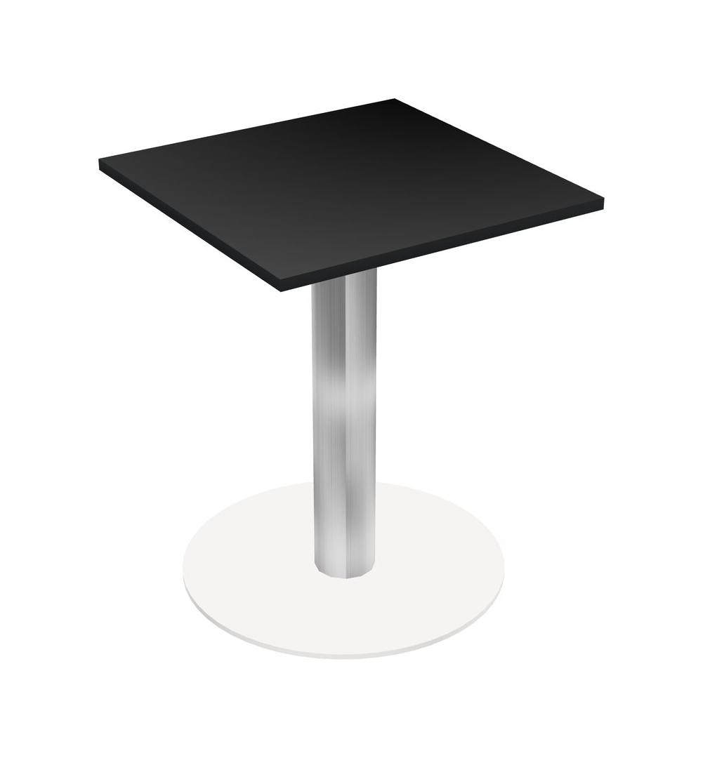 Table Modulaire Pour Bureau, Restaurant, Cafétéria, Salle De Pause Et Service De Restauration, Avec Plateau Noir, Pieds Ronds Chromés Et Base Ronde Blanche