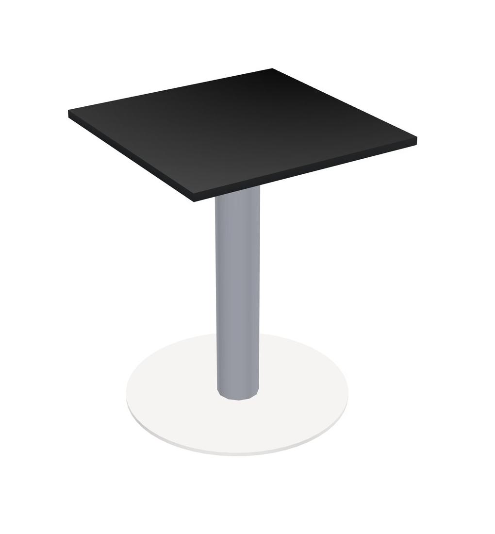 Table Modulaire Pour Bureau, Restaurant, Cafétéria, Salle De Pause Et Service De Restauration, Avec Plateau Noir, Pieds Ronds Gris Et Base Ronde Blanche