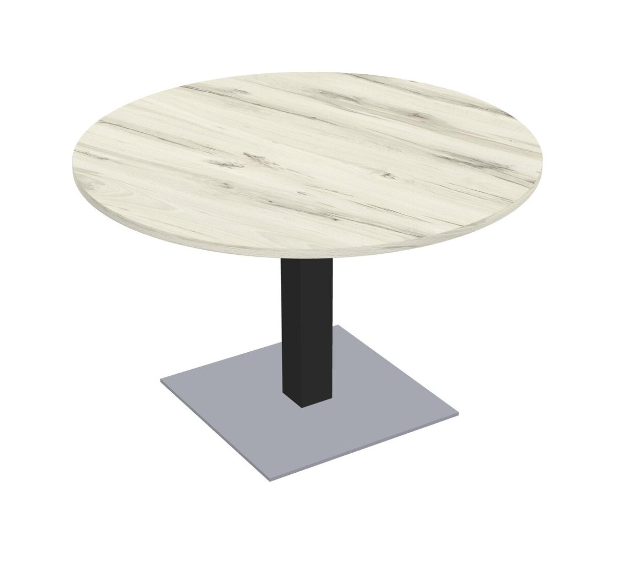 Table Modulaire Pour Bureau, Restaurant, Cafétéria, Salle De Pause Et Service De Restauration, Avec Plateau En Bois Heinne Holz, Pieds Carrés Noirs Et Plaque De Base Carrée Grise