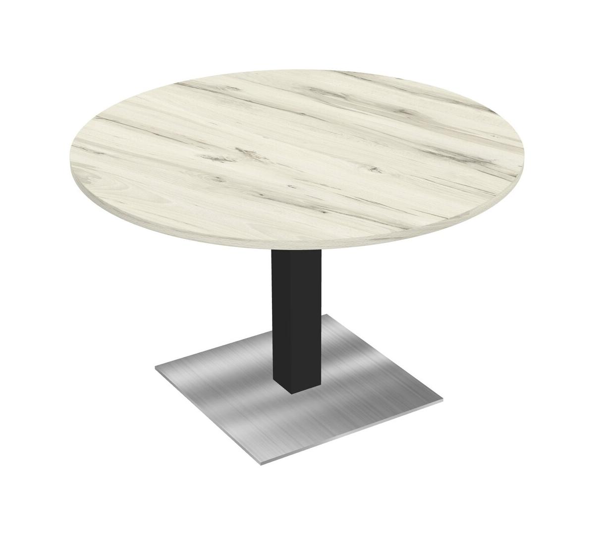 Table Modulaire Pour Bureau, Restaurant, Cafétéria, Salle De Pause Et Service De Restauration, Avec Plateau En Bois Heinne Holz, Pieds Carrés Noirs Et Plaque De Base Carrée Chromée